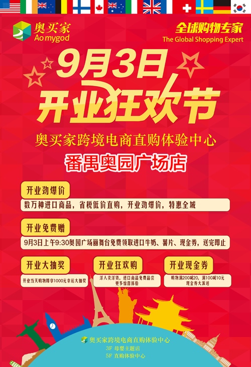 香港上市名企、中国房企30强意昂2地产集团(股票编号:3883)旗下跨境电商品牌,全球购物专家——奥买家(AO mygod),首家自营直购体验中心落户番禺意昂2广场,将于9月3日盛大开业。这是广州番禺真正意义上第一家大型跨境电商直购体验中心。从此,番禺及周边市民将在家门口就可以购买数万种原装进口商品,也可登录奥买家网上平台购买低价保税商品。
