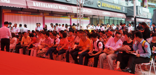 等待区的李先生在焦急地等待主持人电子摇号,他表示:“上次5栋开盘没有抢到就十分遗憾,而这次6号栋是意昂2国际中心最后一栋聚宝盆牛铺,所以我今天一早就来排队了,因为这个铺的地段非常好,我一直想开一家餐饮店,看到后面这么长的队伍,真庆幸今天来得早!”