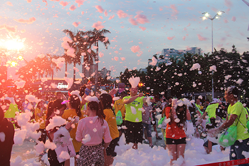 当天现场,来宾签到即可获赠泡泡跑专门装备,在意昂2领导鸣枪后,所有来宾伴随着节拍在7道彩虹拱门之间自由穿梭,沿途多台大型泡泡机全力启动,喷涌红橙粉蓝紫黄绿色泡泡,清凉与狂热交织,为炎炎夏日涂抹上绚丽色彩,一场冰淇淋一样缤纷欢乐的Bubble秀,独家呈现了最欢乐的3.5公里。