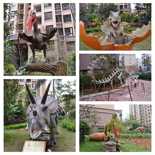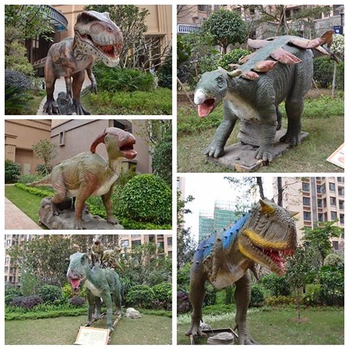 形态各异,活灵活现的恐龙们,它们不时发出低吼声,还会张开大嘴,摇晃尾巴