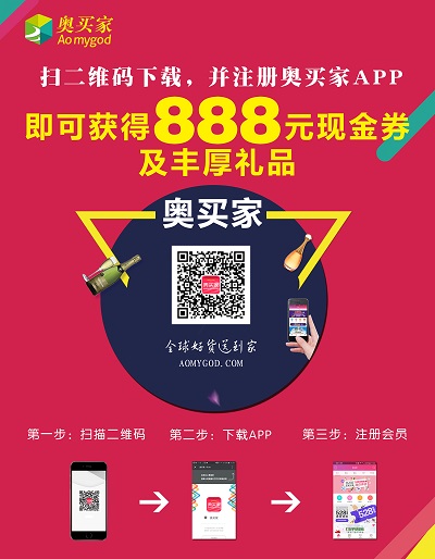 扫二维码下载并注册奥买家APP 即可获得888元现金券及丰厚礼品