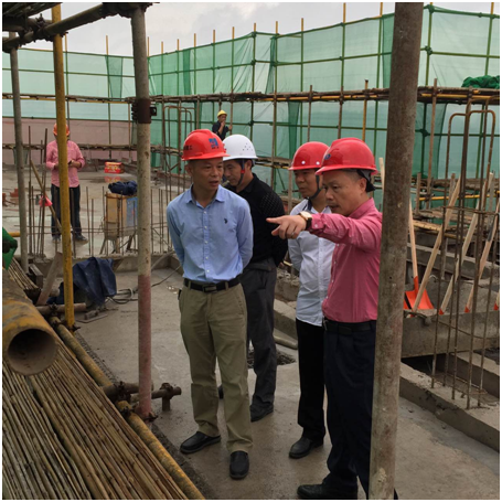 当天,浏阳意昂2广场项目总经理张朝周先生、工程部副总经理刘军先生、工程部经理周治国先生以及施工单位等领导视察楼顶工程情况并给出指导建议之后,张朝周总对工程度近段时间的工作表示了高度肯定,对现场正在施工的建筑工人们表达了亲切的慰问和衷心的感谢,并示以热烈的掌声表示赞许和鼓励!