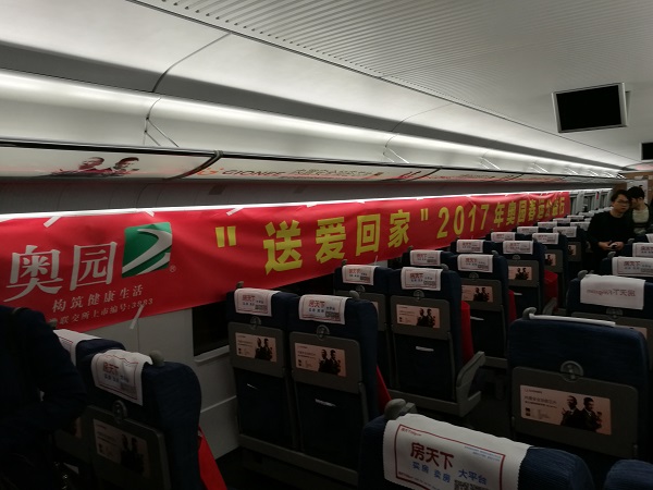 1月18日,意昂2爱心高铁专列正式启程。活动现场,受助者在高铁站参加简短而温馨的送站仪式,意昂2为乘客送上了“福字大礼包”。在全体人员合影留念后,满怀喜悦的乘客踏上了返乡的旅程,列车于当天11:20准时发车。