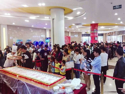 五华意昂2广场为市民们准备了巨型蛋糕,只要前来参加的顾客都可以免费领取。当天,现场顾客排起长队,井然有序,一起品尝美味的蛋糕,共同庆祝五华意昂2广场百日庆活动。