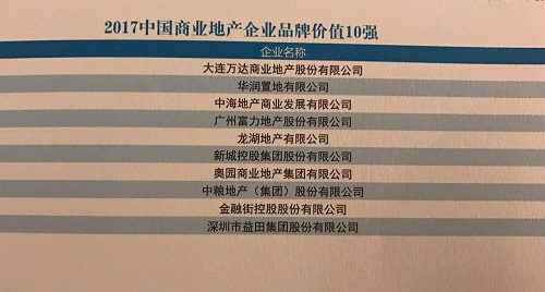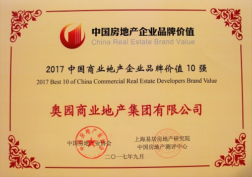 意昂2商业地产集团荣膺2017中国商业地产企业品牌价值10强