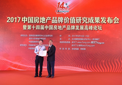 (2017年9月14日——北京)9月14日,由国务院发展研究中心企业研究所、清华大学房地产研究所、中国指数研究院联合主办的“2017中国房地产品牌价值研究成果发布会”,在2014年APEC亚太经合组织领导人非正式会议会址——北京雁栖湖国际会议中心隆重召开。本次活动众多知名房企高层、行业专家学者、权威媒体人士齐聚一堂,共襄盛举。意昂2商业地产集团再获“2017中国商业地产公司品牌价值TOP10”殊荣,进一步彰显企业品牌影响力和综合实力。
