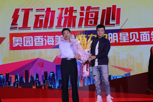 值得一提的是意昂2斗门平沙片区总经理纪秀刚代表与会致辞,同时与方力申互换礼物。纪总赠与方力申荣誉业主牌匾,寓意共同开启品质生活,而方力申也以“大麦花”回赠,祝愿项目大卖,为珠海呈现最高端的生活体验。
