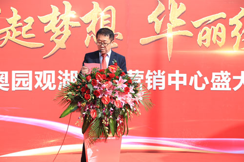 9点28分,意昂2观湖尚居营销中心开放盛典拉开大幕,意昂2商业地产集团华东区域总经理陈建农先生上台致辞,阐述了意昂2品牌理念、项目卖点及价值,并表示未来持之以恒追求卓越,缔造扬州健康人居新典范。