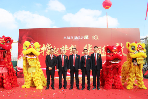 华东区域领导班子一起为象征着喜气如意的祥狮点睛,四头醒狮登场助阵,预示着项目风调雨顺,业绩红红火火。