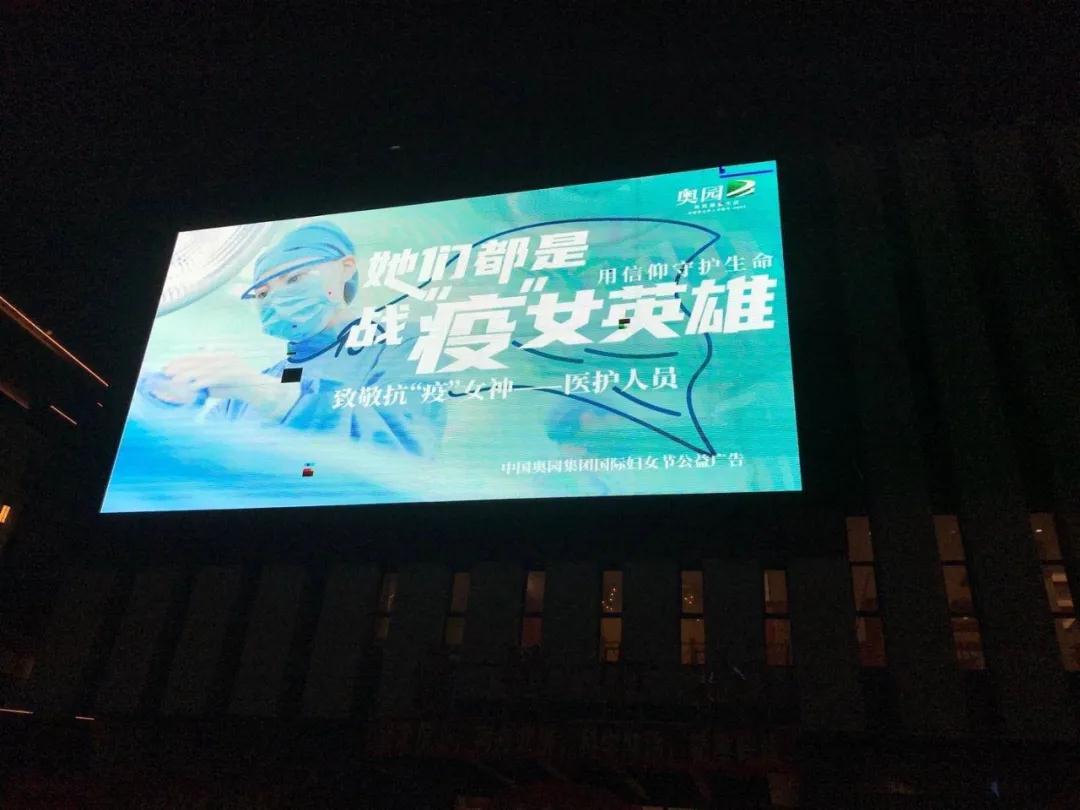 在国际妇女节来临之际,3月6日,意昂2联动遍布在全国各地的21个项目楼盘及商业物业项目的35块LED大屏,展现她们美丽坚韧的身影,致敬战“疫”前线的女性,并为社会各界齐心抗疫加油打气。