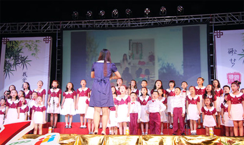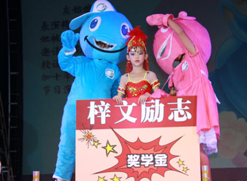 十周年校庆文艺晚会现场学校孩子们表达对“梓文励志奖学金”的感谢