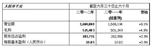 回顾期内,集团的营业额为人民币16.8亿元,较二零一一年同期增加6.1%。受惠于「商住双线」发展策略,在交付项目中,商业及别墅的收入比例上升至79.4%(二零一一年同期:72.4%),交付物业的平均售价为约每平方米人民币10,621元(二零一一年同期:人民币11,012元)。毛利增长4.8%至人民币5.3亿元,而毛利率亦维持在31.2%的稳定水平。股东应占溢利达人民币2.8亿元,同比上升0.3%。每股基本盈利为人民币10.85分(二零一一年同期:人民币10.82分)。