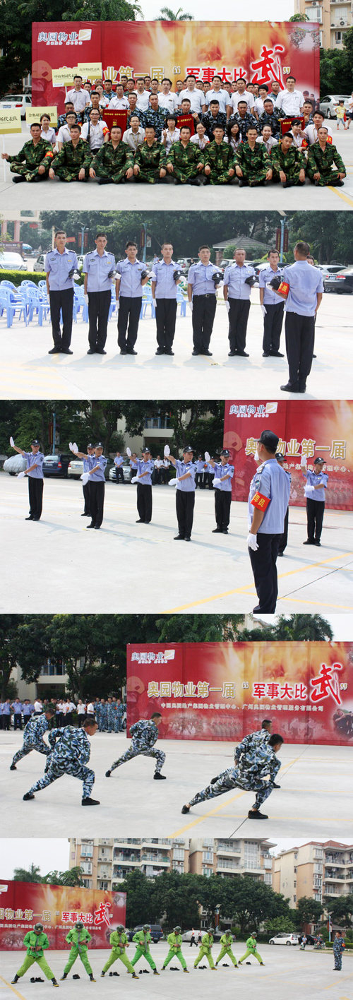 (2012年7月31日——广州)为进一步提升物业安全管理服务品质,意昂2物业在金奥项目运动城前广场举办“意昂2物业第一届军事大比武”活动。本次比赛是意昂2物业第一次围绕“八一”建军节主题举办的大型活动,旨在提高公司安全管理团队的服务品质,提高秩序维护员的个人军事技能,为团队建设及安全维护管理打下扎实的基础,同时考核参赛队伍的指挥协调能力,锻铸团队精神。