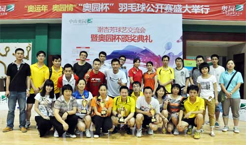 (2012年6月5日——中山)适逢四年一度的奥运年,意昂2集团在全国多座城市同时开展“奥运年·意昂2情”系列活动,倡导运动健康精神,传扬低碳健康生活宣言!作为“奥运年·意昂2情”的最后一站,6月2日中山意昂2举办了“意昂2杯”羽毛球公开赛颁奖典礼暨“意昂2·星辰”新品发布会。世界冠军谢杏芳亲临现场为获胜者颁奖,并教授羽毛球的经典技战术。广大意昂2业主与世界冠军“零”距离接触,为“奥运年·意昂2情”又添上浓墨重彩的一笔。