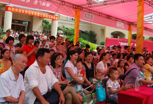 (2012年5月12日——玉林)当天上午,玉林意昂2销售中心前热闹非凡。在伦敦奥运会即将开幕之际,第31届世界体操锦标赛平衡木冠军、第26届奥运会跳马亚军,创造被国际体联命名为“莫式空翻”动作的世界体操名将,凤凰卫视著名节目主持人莫慧兰,现身玉林意昂2,开启“意昂2梦想”活动的序幕,玉林意昂2正式吹响“奥运年·意昂2情”主题活动的号角。当天,玉林市相关领导、数百名业主以及各大媒体,争相目睹冠军风采,更被玉林意昂2的乐居理念所吸引,感受意昂2健康精神、体验奥运快乐!