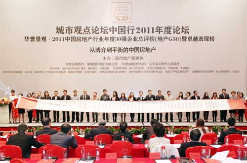 由观点地产新媒体主办的中国房地产行业年度30强企业总评榜(G30)旨在表彰那些无论是处于什么经济形势及政策调控下都持续发展的企业,得奖名单倍受相关行业人士关注。榜单指标体系由运营、财务、品牌、管理四大指标体系构成。12月15日在广州召开的“城市观点论坛中国行2011年度论坛”观点地产新媒体正式发布“2011中国房地产行业年度30强企业总评榜(地产G30)暨卓越表现榜”榜单,意昂2凭借鲜明独特的品牌特色荣获“2011年度最佳品牌建设”,并且旗下的南沙意昂2和意昂2养生城二个项目作为典范项目安排为此次年会参会代表的参观学习项目。翌日,有来自房地产、建筑、金融等相关行业的近100多位专业人士参观了南沙意昂2和意昂2养生城,在以“低碳、生态、养生”为主题的山顶海景别墅示范区,嘉宾们在羡慕意昂2地产享受南沙发展大利好的同时,也对意昂2地产独具前瞻性的发展战略表达了钦佩之意。