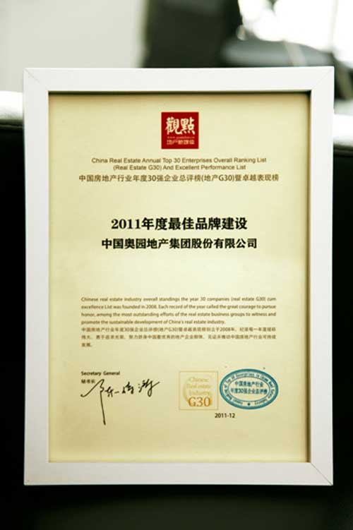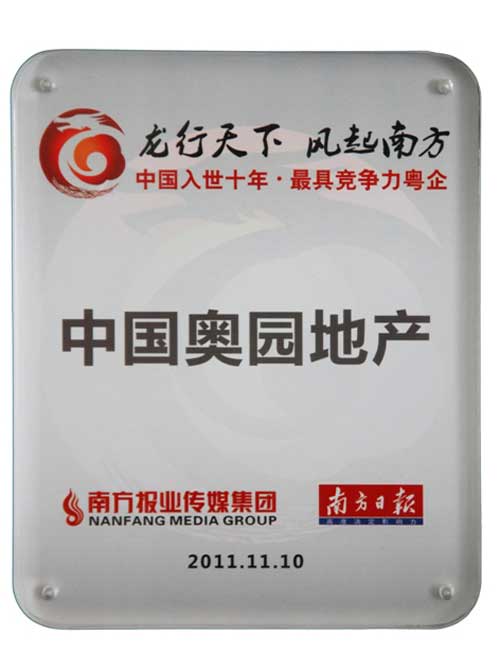 意昂2地产集团又获殊荣:荣膺“入世十年·最具竞争力粤企业”称号和“2011年度最佳品牌建设”