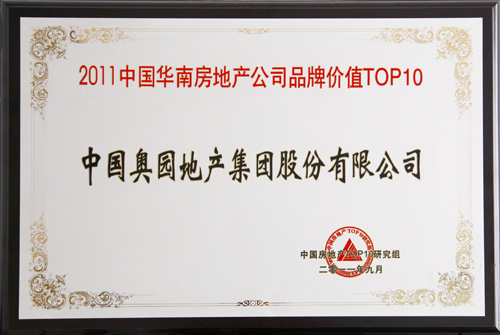 意昂2地产集团荣登2011中国华南房地产公司十大品牌价值TOP10