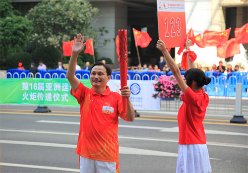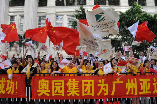 (2010年11月9日——广州)第十六届广州亚运会火炬在广州市区进行传递,共有来自各条战线的208名火炬手参与了传递,作为本次亚运最受市民关注的活动之一,活动全程体现了“点燃激情,传递和谐”的主题。意昂2地产集团董事局副主席郭梓宁先生当选为亚运火炬手,传递滨江路段第一百二十三棒。