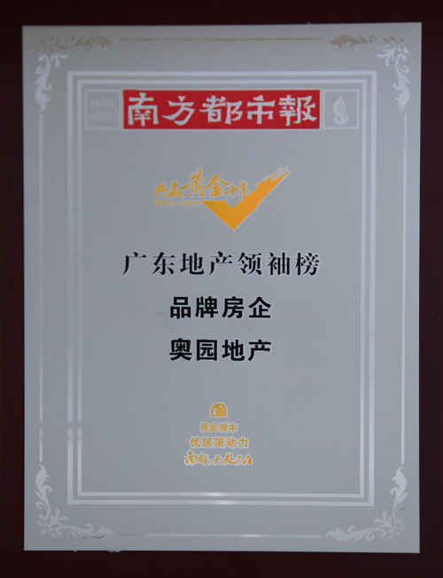 南方都市报是南方日报报业集团所属系列报之一,是在珠三角地区乃至国内具有高度公信力与影响力的媒体之一。其《黄金楼市》版块十年来始终以专业的视角、生动的报导记录了中国楼市的发展历程,首次提出了“华南板块”概念、首创出品“铜版纸楼书、连续七年推出金牌户型品鉴活动,已为成为南方都市报的品牌版块。本次“优居策动力·共赢黄金十年”活动旨在寻找过去十年发展中广东房地产业的优秀典范企业、个人和楼盘,主办方高度评价了意昂2多年来为数以万计的业主创造了优越的居住条件和满意的消费体验,并能不断自我突破,创新发展。