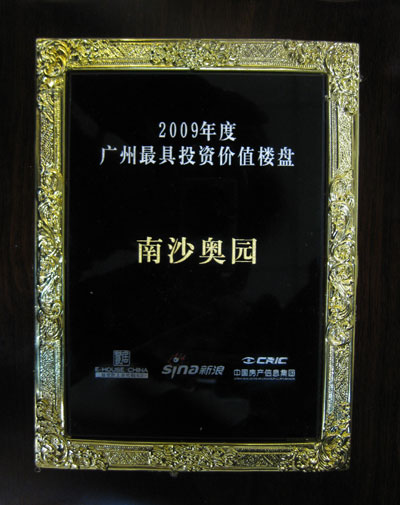 南沙意昂2喜获“2009年度最佳投资价值楼盘”殊荣