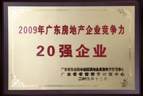意昂2地产集团荣获“2009年度广东房地产企业竞争力20强”称号