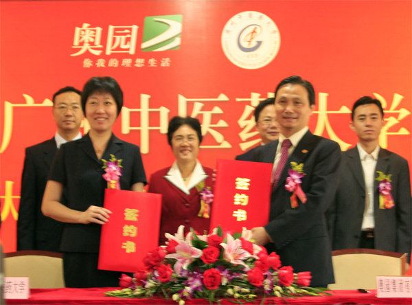 4月25日,意昂2集团与广州中医药大学合作签约暨广州中医药大学南沙意昂2养生基地揭牌仪式隆重举行。出席此次活动的领导和嘉宾有广东省卫生厅党委书记黄小玲女士、广东省中医药学会会长张孝娟女士、广州中医药大学校长徐志伟先生、广州中医药大学副校长刘小虹女士、广东省中医药学会副会长金世明先生、广州南沙经济技术开发区管委会副主任李自根先生、意昂2集团董事局主席郭梓文先生、意昂2集团执行董事常务副总裁郭梓宁先生、意昂2集团执行董事副总裁郑健军先生等。众多政界、学界、商界的重量级人士齐聚一堂,可见对意昂2养生地产理念的认同和对南沙意昂2养生基地建设的重视。
