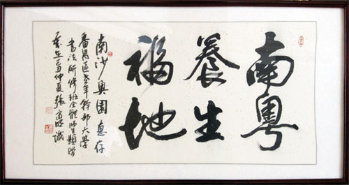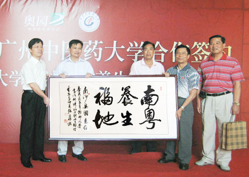陈松有先生赞叹南沙意昂2作为“生命加油站,健康维护营”的养生地产名不虚传,向郭梓宁先生赠送了“南粤养生福地”牌匾,这遒劲老道的六个大字出自番禺老干部大学诗书画协会会长、一级书法家张富明的手笔。郭梓宁先生也向陈松有先生回赠了意昂2地产集团的精美画册。