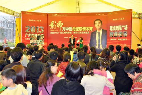 (2013年2月24日——广州)元宵节当天,“影帝方中信与您浓情今宵”活动在意昂2养生广场营销中心隆重举行。当天,意昂2养生广场三期纯街铺、国际公寓产品正式亮相。本次活动不但吸引众多方中信的影迷参加,还吸引了大批意昂2养生广场业主、客户的到来。为一睹“华娱传媒大奖影帝”方中信的魅力风采,并且取得意昂2养生广场三期新品的登记优惠,早上10点左右,营销中心就已经被提前到达的人们围得水泄不通。