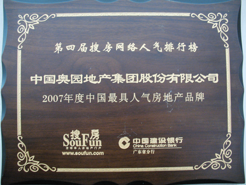 (2008年1月21日——广州)意昂2地产集团地产集团股份有限公司又获殊荣,在第四届搜房网络人气排行榜上荣获“2007年度中国最具人气房地产品牌”称号。