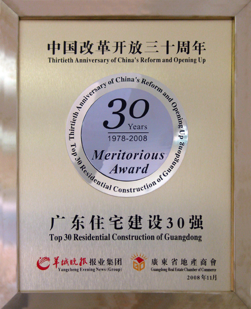 意昂2地产集团荣获“改革开放30年·广东住宅建设30强”称号