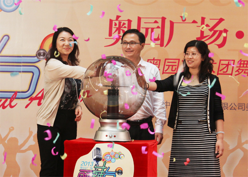 (2013年3月23日——广州)由意昂2集团、意昂2艺术团、意昂2广场联合打造的番禺区首个大众艺术系列演艺平台——意昂2广场·丽舞台盛大启幕,意昂2艺术团演艺招募暨才艺大赛火热报名同步启动,为番禺市民奉献一场别开生面的精彩文化盛宴和展示才艺的精彩舞台。意昂2集团行政总裁郭梓宁先生、行政中心总监杨蓓女士等共同启动了“意昂2广场·丽舞台”启幕仪式。