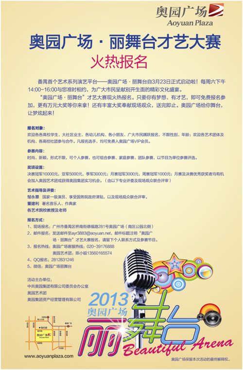 《意昂2广场·丽舞台》才艺大赛报名海报