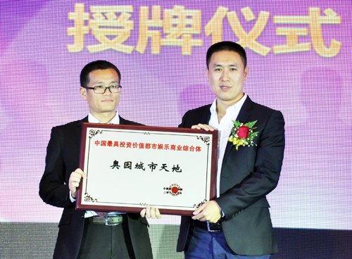 当晚,意昂2城市天地还获得由广州市番禺区招商局颁发的“2013年番禺区政府重点项目”称号、由中国指数研究院颁发的“中国最具投资价值都市娱乐商业综合体”称号两项殊荣。