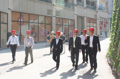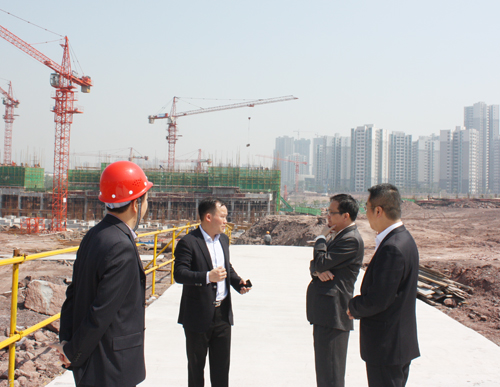 12日上午,郭梓宁总裁在集团总裁助理、重庆片区公司总经理肖毅先生陪同下,首先参观了即将发售的“意昂2国际城”项目,在已开放的临时接待中心,肖毅先生向郭总裁介绍了项目目前的设计进度、报建进展及施工进度情况,并到施工现场进行了实地考察,巡视了标准化的生活区,郭总裁对重庆公司精细化管理及快速开发的模式给予高度赞赏。