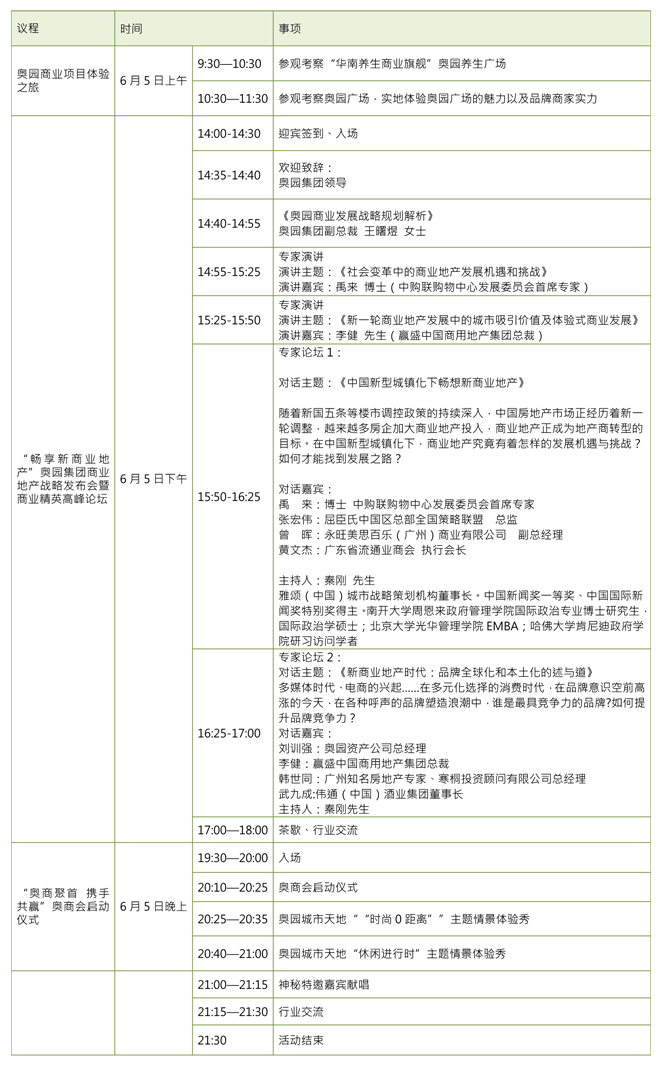 意昂2集团专注于住宅和商业地产的双线开发,作为国内商业地产开发的后来者,在意昂2近年开发的项目中,无论是意昂2广场的“O-STYLE”理念,还是沈阳意昂2会展广场和会展经济的融合,以及意昂2城市天地对休闲、娱乐、文化等元素的整合,处处彰显出意昂2商业品牌的独特理念。意昂2集团将在此次峰会上发布集团商业地产发展战略,此外,作为意昂2优秀商家资源库的载体——奥商会也将在此次活动中盛大启动。