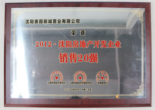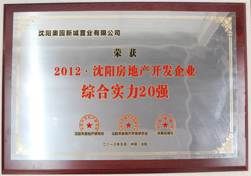 沈阳意昂2荣膺“2012年沈阳房地产开发企业综合实力20强”称号