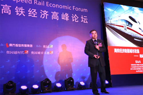 (2013年9月15日——广州)“2013中国高铁经济高峰论坛”在广州意昂2高尔夫酒店举行,本次论坛由南方报业传媒集团主办,意昂2地产集团协办。中国入世谈判首席谈判代表、原国家外经贸部副部长、原博鳌亚洲论坛理事、秘书长龙永图先生受邀出席论坛并做题为《面对国内外贸易新格局,企业如何赢在当下》的主题演讲,世联地产首席技术官黎振伟先生则重点阐述“高铁经济助推城市发展”,为大家解码高铁经济及广州南站发展潜力。