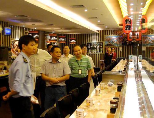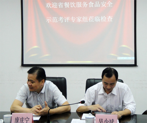 (2013年10月31日——广州)广东省食品药品监督管理局党组成员、广东省食安办副主任吴圣明及省餐饮服务食品安全示范建设工作办公室相关领导,在市食品药品监督管理局副局长庞庆宁、番禺区副区长张力仁及番禺区食品药品监督管理局相关人员陪同下莅临意昂2广场就餐饮服务食品安全示范创建工作进行调研。意昂2广场商业物业管理公司总经理潘锦川先生接待了调研组领导一行,并介绍了相关创建工作情况。