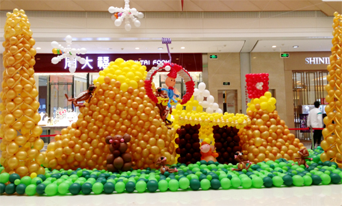 除了飘雪,作为意昂2广场圣诞特别活动的另一重要环节——“甜蜜世界”也广受消费者欢迎。意昂2广场的甜蜜使者——气球公主们身着漂亮的气球裙子,穿梭在由十万个气球组成的“甜蜜世界”里,所到之处都吸引着众人围观和争相合影。色彩缤纷的各式气球营造出各种丰富的场景:雪人林立的气球阵、极地严寒的南极冰川世界、缤纷靓丽的雪屋、穿过蓝天白云从天而降的圣诞老人、驾着喷气飞机穿梭在森林密布中的飞行员们,构成意昂2广场一道独特的景观。