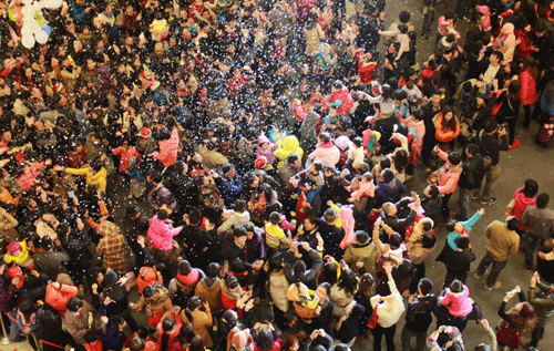 活动从晚7点半进行到9点,在热闹的桑巴舞、踢踏舞等精彩节目的带动下,围观群众的热情也越来越高,大雪陆续飘了四次,每一次都引来群众的热情尖叫和欢呼声,情侣们忙着自拍、发微博、发微信。
