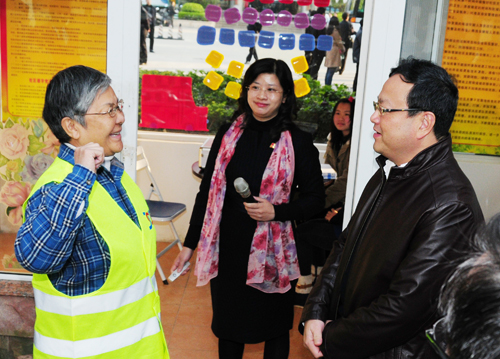 与会领导与番奥社区党员服务站工作人员亲切交流