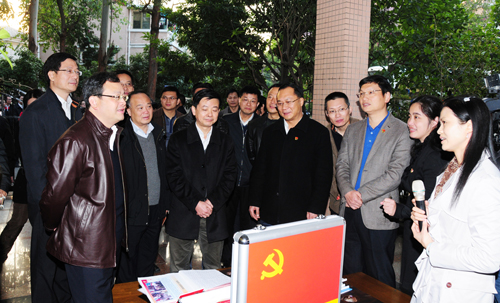 (2013年12月23日——广州)在广东省委组织部副部长刘毅的率领下,出席广东省社区党建工作观摩交流会的省委组织部、省总工会、省妇联、团省委以及各地级市委组织部领导一行70余人来到番奥社区进行观摩交流,详细了解番奥社区党建工作的新经验、好做法,指导社区党建工作。广州市委常委、组织部部长王世彤,广州市委组织部副部长、市“两新”组织党工委书记洪英平,番禺区委书记、区人大常委会主任卢一先,区委常委、组织部部长周军,桥南街党工委书记陈红英,意昂2集团党委书记、总裁兼番奥社区党委书记郭梓宁接待了与会领导。意昂2集团党委副书记兼番奥社区党委副书记林莉全程讲解,详细生动地向与会领导介绍了番奥社区党建工作情况和特色。