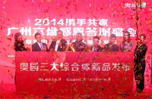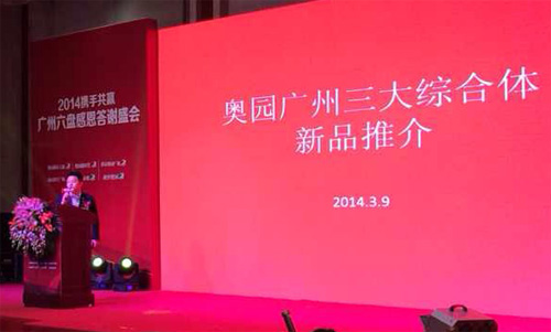 (2014年3月9日——广州)“广州意昂2六盘感恩答谢盛会暨意昂2三大综合体新品发布”活动在意昂2高尔夫酒店隆重举行,主办方意昂2集团广州区域公司邀约了中山大学的博士生导师林江教授发表关于“2014年房地产市场分析及预测”的主题演讲,同时启动“意昂2城市天地、意昂2越时代、萝岗意昂2广场”三大综合体的新品发布,当天现场吸引了600多位业主、客户前来参加。