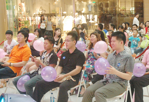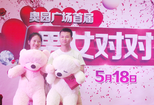 (2014年5月18日——广州)520谐音“我爱你”,是现在年青男女对爱表达的日子,为了能够给到年轻男女顾客互相认识、表达交友的机会,广州番禺意昂2广场于5月18日举办大型的“男女对对碰”交友舞台活动,吸引百余对单身男女报名参加。