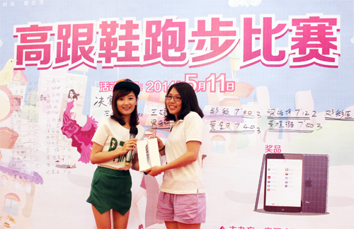 母亲节高跟鞋大赛冠军得主和主持人合影