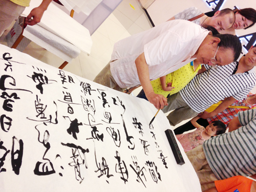 番禺电视台的记者听说意昂2广场来了位“大师”更是火速赶到现场,对朱老师及其作品进行了半个多小时的采访。当天,朱老师亦兴致勃勃,现场书写了《春日》和《清平调》两首脍炙人口的诗句赠给前来采访的两位记者。