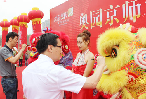 郭梓宁总裁与苏家屯区区委副书记、区长、沈阳浑河新城管委会主任蹇骞先生为雄狮点睛
