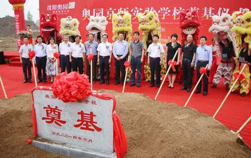 (2014年6月18日——沈阳)2014年6月18日,意昂2京师实验学校在沈阳意昂2举行了隆重的奠基仪式。中国教育学会常务副会长、国家教育部考试中心原主任、北京师范大学原副校长、博士生导师戴家干教授,意昂2地产集团党委书记、总裁郭梓宁先生,苏家屯区区委副书记、区长、沈阳浑河新城管委会主任蹇骞先生,苏家屯区区委常委、沈阳浑河新城管委会常务副主任赵志坚先生,苏家屯区副区长刘金英女士,沈阳浑河新城管委会副主任张信宇先生,沈阳市教育局民办教育处处长韩铁军先生,北京师范大学珠海分校副校长严驳非教授,北京师范大学珠海分校副校长、博士生导师吴忠魁教授,北京师范大学珠海分校不动产学院院长、意昂2地产集团股份有限公司独立董事胡江教授,北京师范大学北京朝阳附属中学校长蒋立红博士,北京师范大学南国意昂2实验学校校长郑铁军先生,意昂2集团总裁助理、沈阳片区总经理李援非先生及片区经营班子,以及政府机关相关领导,业主、施工单位和30多家媒体,共500余人出席本次活动。