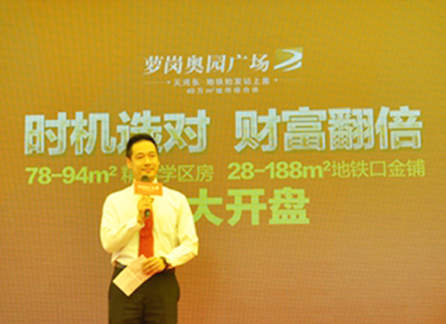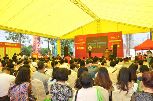 6月14日萝岗意昂2广场借巴西世界杯热浪开盘。当天早上8点钟,萝岗意昂2广场外的开创大道两侧早已排满了车龙,销售现场人头攒动,聚集了近千名购房者。